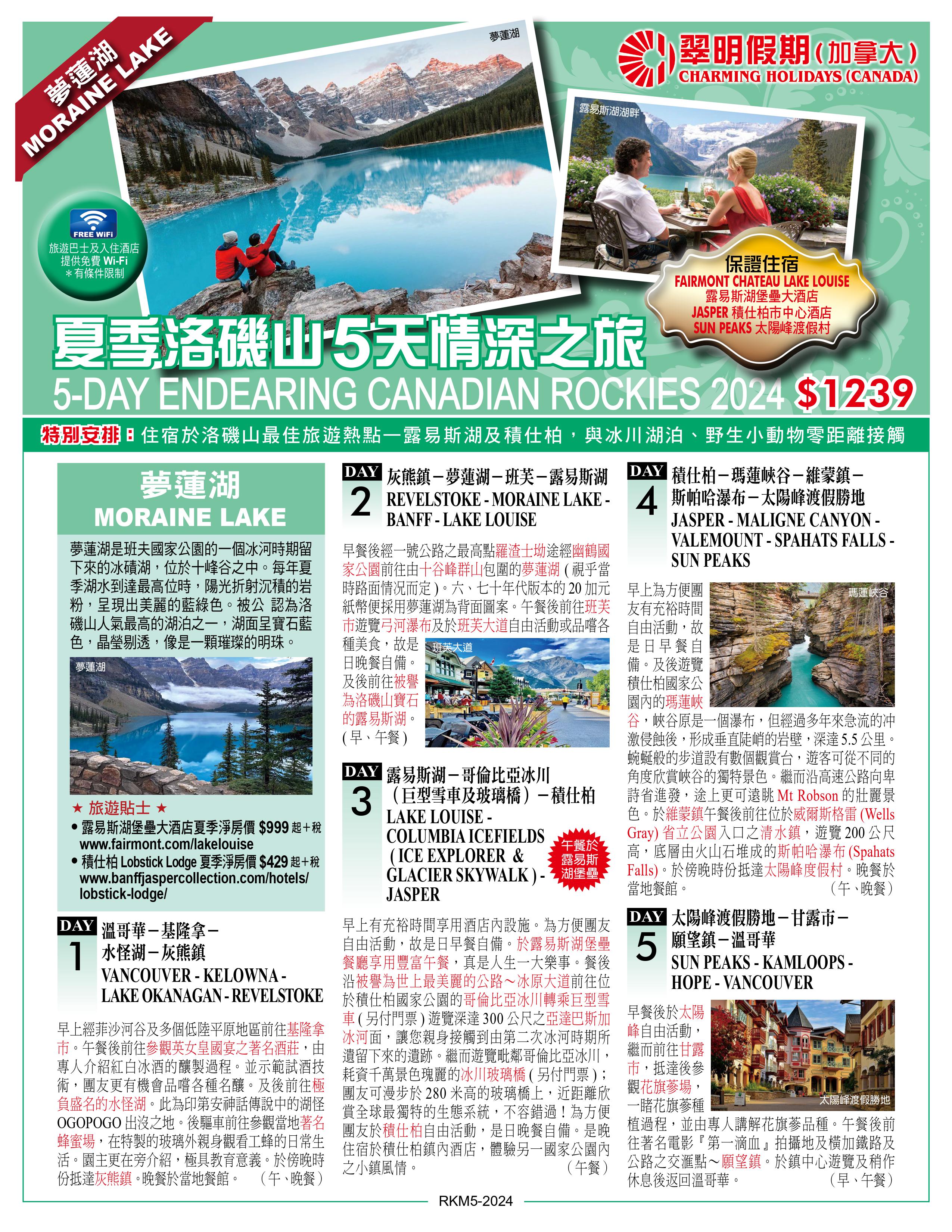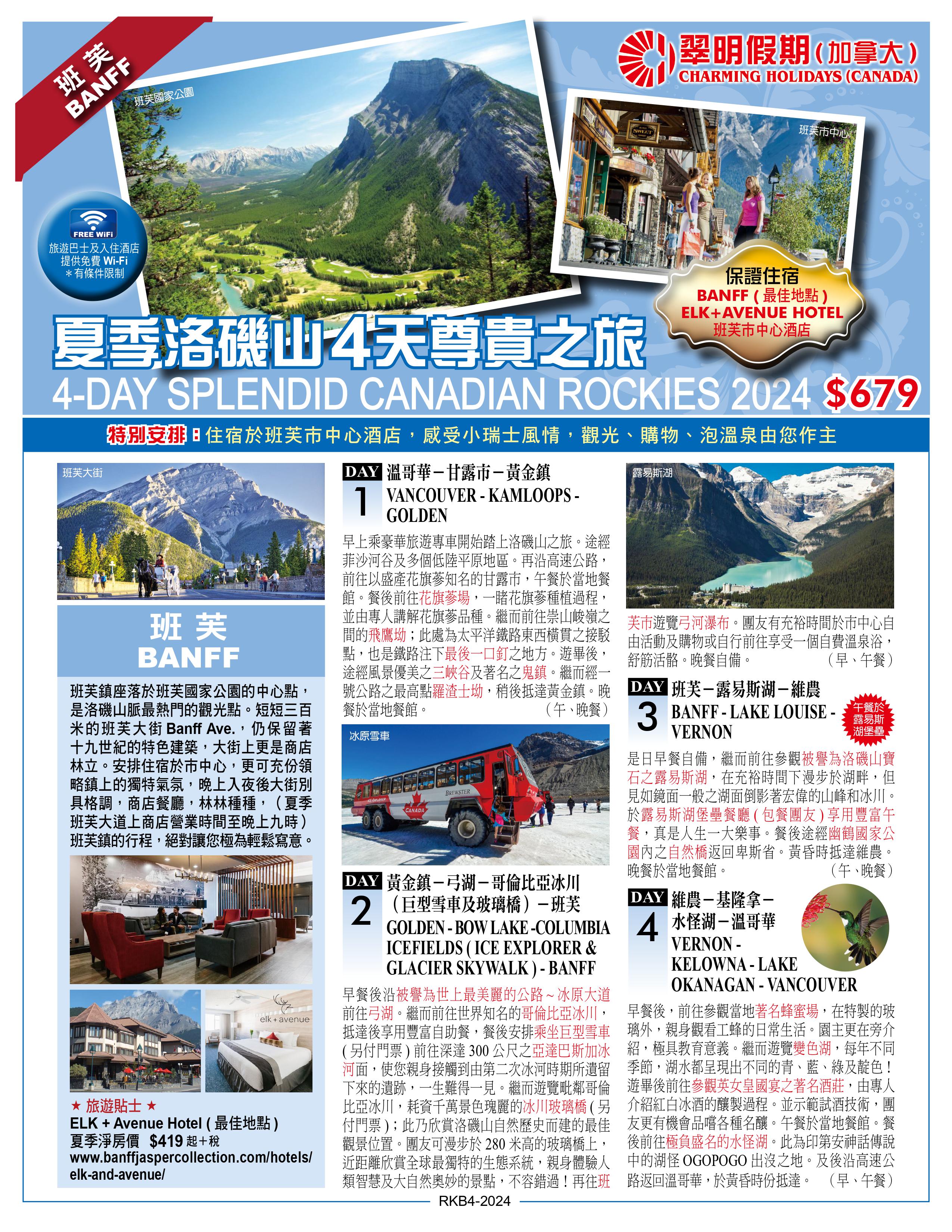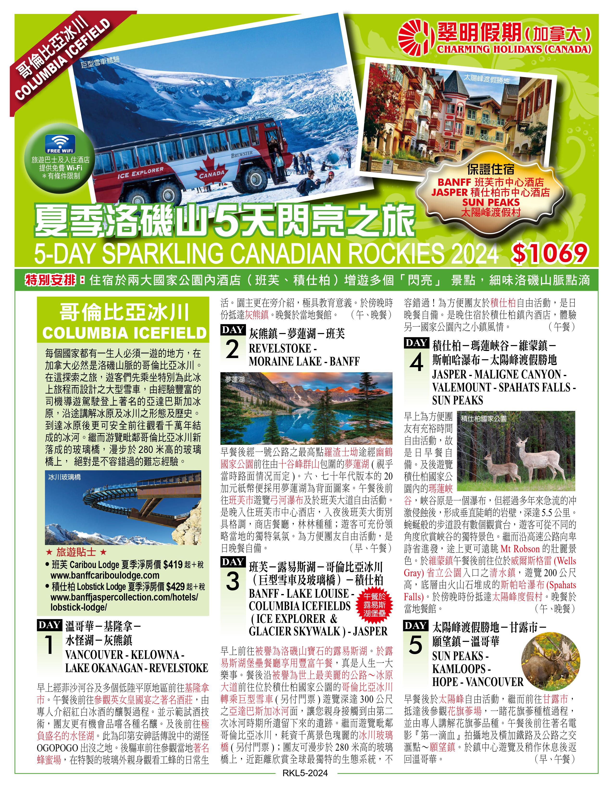 住宿於兩大國家公園內酒店(班芙、積仕柏)增遊多個「閃亮」 景點,細味洛磯山脈點滴
