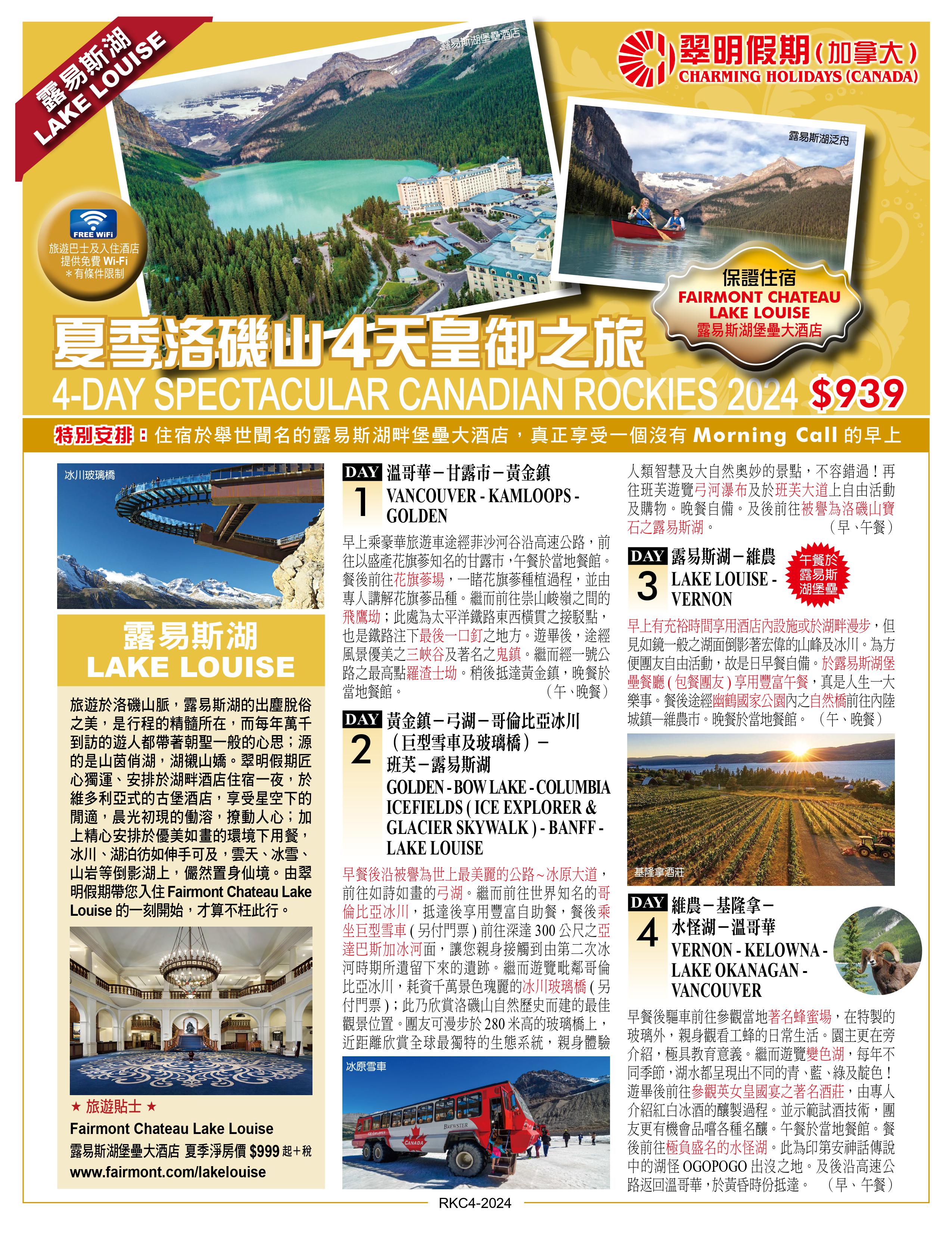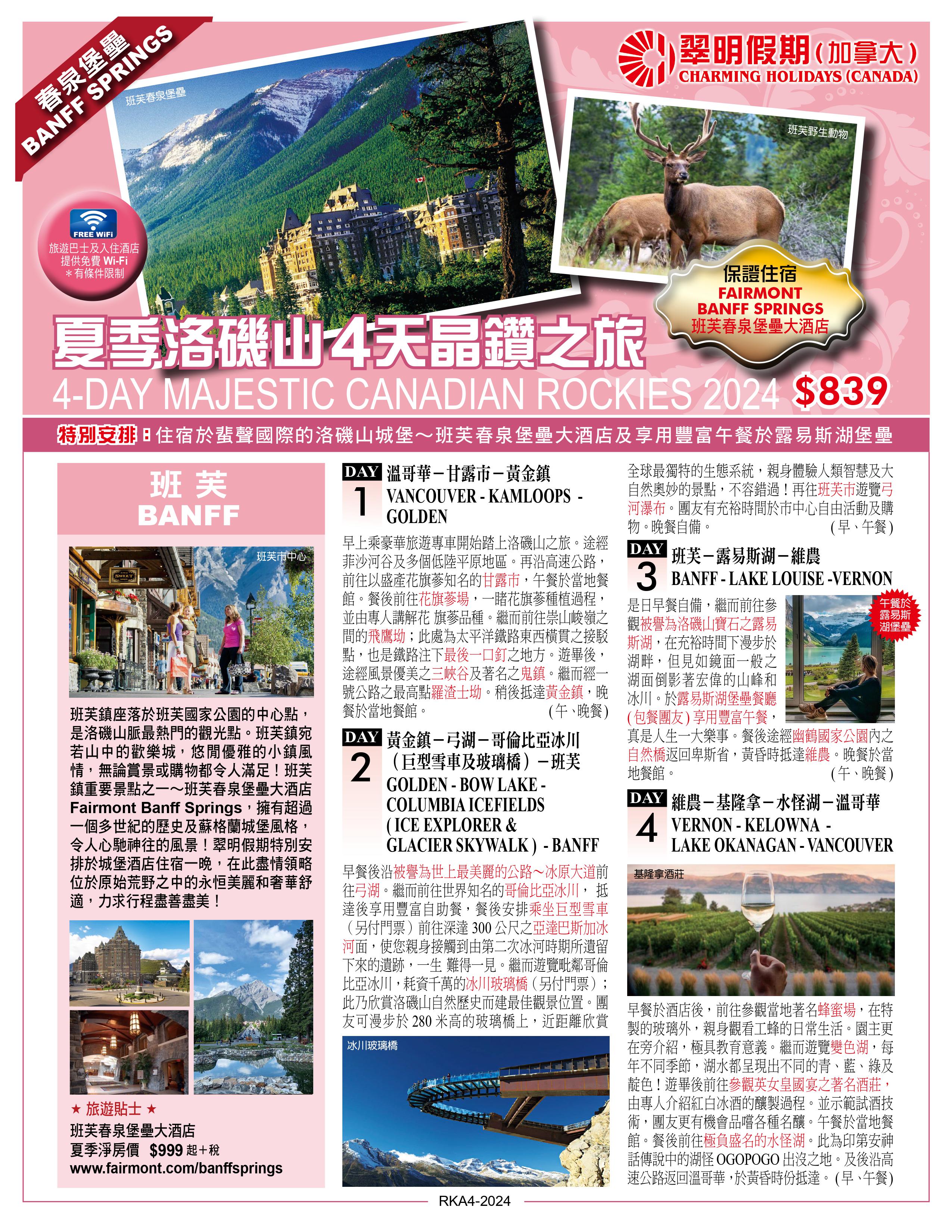 住宿於蜚聲國際的洛磯山城堡~班芙春泉堡壘大酒店及享用豐富午餐於露易斯湖堡壘